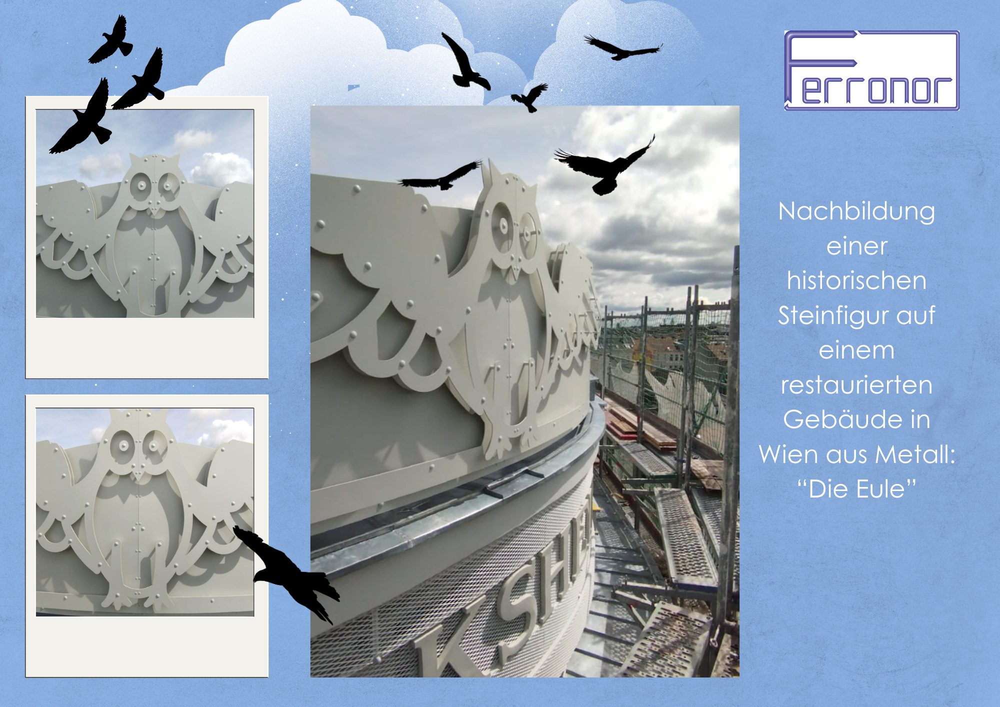 Das im Jahr 1905/06 errichtete Gebäude wurde generalsaniert. In der ursprünglichen Attika sitzende Relief einer Eule wurde entfernt und durch eine Metallkonstruktion neu interpretiert.